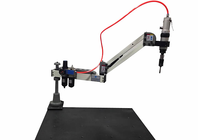 本機采用壓縮空氣驅動,安全快速高效;較小氣壓力和氣量(0.6-0.8mpa),超大扭力輸出;.能對各種鋼材、鐵、銅、鋁、塑料等材料攻絲;筒夾帶過載保護裝置,絲攻損傷較少,螺牙精度高;操作簡單輕便,完全不需要經驗和技術。